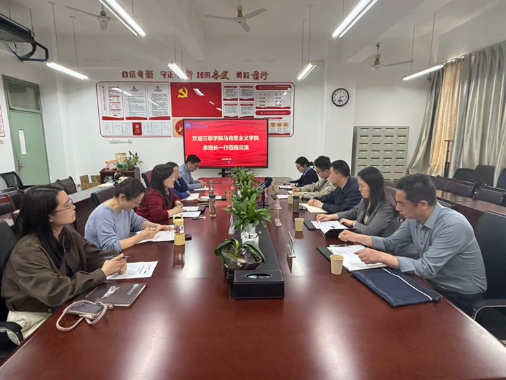 本网讯 为加强校际马克思主义学院交流,4月10日,安徽三联学院马克思主义学院院长余晖、副院长刘江一行来我院调研学习,我院院长马晓艳、副院长刘晓君、相关教研室主任、教师代表参与了本次交流。