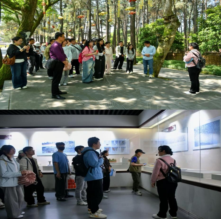 上午,在讲解员的引导下,师生们沿着名人大道徐徐前行,相继瞻仰了“永不忘却的记忆”地雕与“群英荟萃”主题雕塑。在龙河口水库纪念馆内,一幅幅泛黄的历史照片、一件件斑驳的筑坝工具、一段段珍贵的影像资料,生动再现了上世纪五十年代舒城人民在极其艰苦的条件下,肩挑手推、截流筑坝,创造“世界第一人工土石大坝”奇迹的峥嵘岁月。师生们驻足凝视,通过翔实的史料深刻体悟了社会主义建设时期人民群众“敢教日月换新天”的奋斗精神与集体智慧。