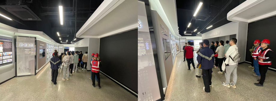 抵达企业后,师生们首先走进企业展厅。通过详实的图文介绍、实物构件展示及三维模型演示,同学们系统了解了企业发展历程、全产业链布局及核心技术优势。从装配式混凝土框架体系到钢结构体系,从BIM技术深化设计到全生命周期数字化管理平台,让同学们对智能建造的行业前沿有了直观认知,鼓励同学们树立起科技赋能建筑的专业理念。随后,师生们深入装配式构件生产车间,实地观摩智能化生产线运行全过程。在PC构件自动化生产区,智能生产设备精准完成钢筋加工、混凝土浇筑、养护成型等工序,机器人协同作业实现了构件生产的标准化、精细化与高效化。在预应力叠合板制造区,技术人员详细讲解了构件模具设计、精度控制及质量追溯体系,同学们近距离观察了构件预留孔洞、钢筋排布等细节。技术人员结合实际工程项目案例逐一细致讲解,现场交流氛围热烈。
