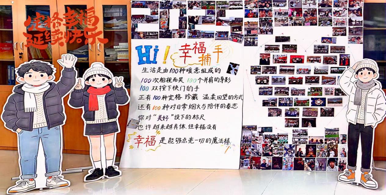 本网讯 为加强和改进新时代学生心理健康工作,发挥心理活动在学生核心素养提升中的独特作用,促进学生心理健康发展,提高学生对于幸福的感知度,主动寻找幸福、感恩幸福,土木工程学院于12月30日在南食堂门口举办幸福摄影展活动。