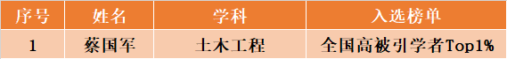 蔡国军教授此次跻身TOP1%行列,不仅是个人学术水平的高度认可,更体现了学院在土木工程核心研究领域的深厚积累。一同入选的张宁教授等11位TOP5%学者,也凭借各自在专业方向的深耕细作,形成了兼具影响力与创新性的研究成果,构筑起学院层次分明、结构合理的科研人才梯队。(图/文:韩婷婷;一审:叶训;二审:陈东;三审:王媛)