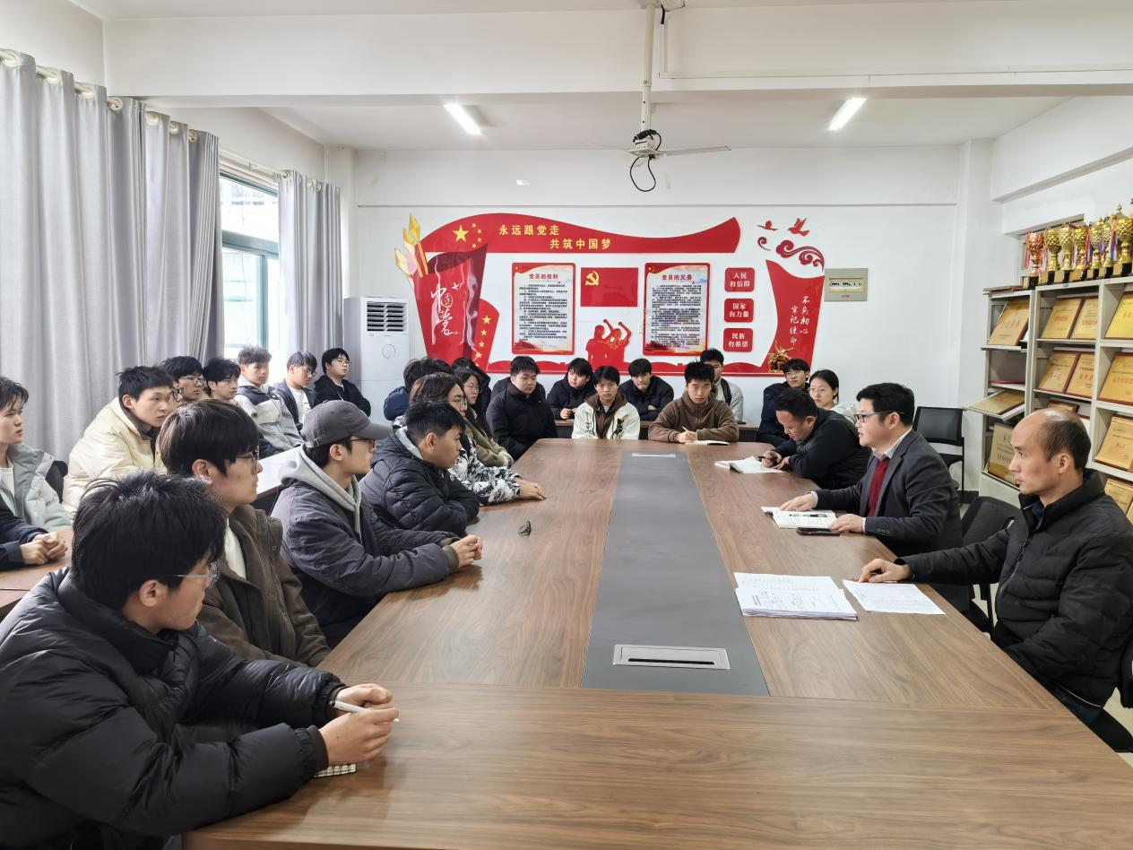 施国栋首先祝同学们元宵节快乐,分析总结了上一学年首届智能建造“茅以升班”的学业状况和存在的问题,表示智能建造“茅以升班”作为传承和弘扬茅以升先生“爱国、科学、奋斗、奉献”精神的拔尖创新型班级,需要同学们保持主动的学习热情、端正的学习态度,在学科竞赛、大创项目等实践活动中要积极参与,冲在前列,展现出良好的精神风貌。张文豪介绍了本届智能建造“茅以升班”的退出机制和本学期第三轮选课的注意事项。许庆虎鼓励学生要保持主动,加强学习,做好规划。尹迪迪从学业成绩、学科竞赛、大创项目、考公考研、就业创业五个方面均要达到100%的目标,确立了班级的管理制度。学生表示将珍惜荣誉与机遇,勤学善思、刻苦钻研、勇于实践、积极交流,不负各位老师的期望。