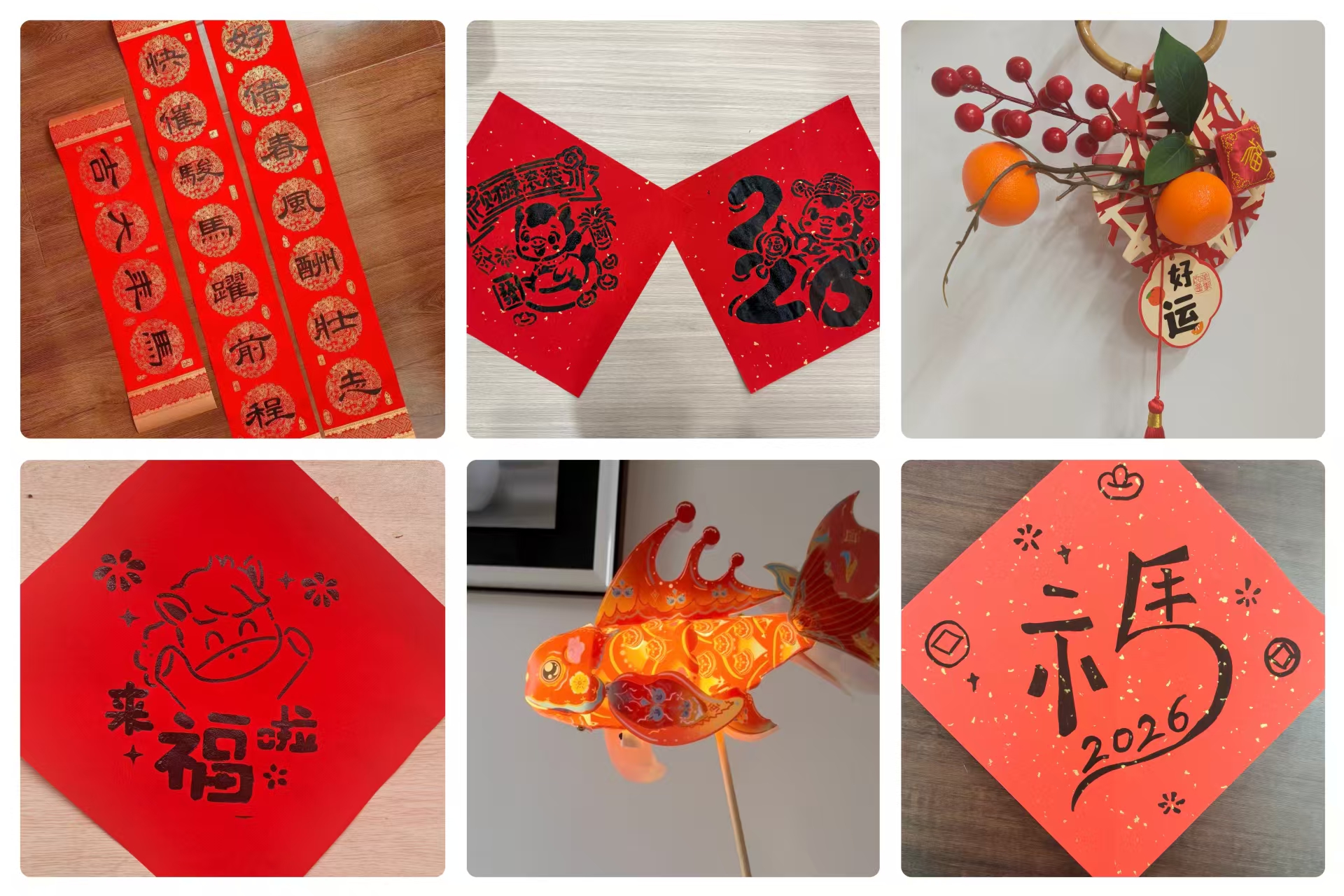 “易”绘新春赛道,同学们化身民间艺术家,新春贺卡、创意福字、手绘年画、精致手工等作品琳琅满目。生肖马的灵动造型、红灯笼的喜庆元素、团圆饭的温馨场景,在同学们的笔下、剪刀下焕发出别样光彩。每件作品都配有手写的暖心祝福,一笔一画间,是青春对新年的美好期许,更是对传统文化的别样诠释。在“易”拍年味赛道,同学们聚焦身边的烟火气,用镜头捕捉新春瞬间。家里的年味装饰、街头的新春布景、家人围坐唠嗑的温馨画面、手写祝福的温暖笑脸,一张张照片、一段段视频,将春节的团圆喜乐与民俗风情定格成永恒。其中,不少同学聚焦家乡年俗,通过作品展现了扫尘祭祖、守岁祈福、庙会赶集等特色活动,搭配翔实的创作说明,让传统年俗文化在校园里得以传播与延续。