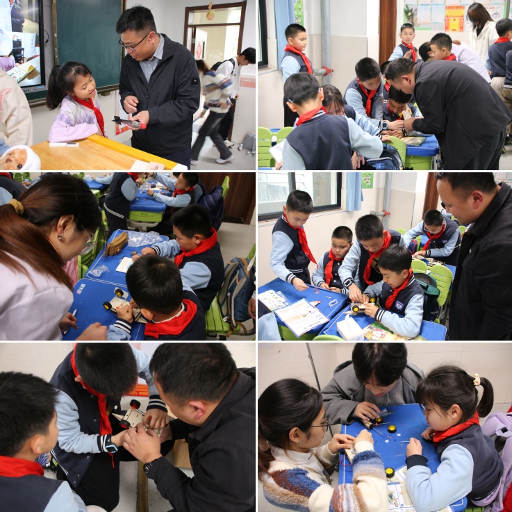 趣味体验环节成为本次活动的亮点,志愿者将同学们分组,开展钻探车手工 DIY实践项目。在钻探车DIY现场,大学生志愿者一对一耐心指导,从零件组装、结构搭建到细节固定,带领小朋友们一步步完成专属钻探车模型的制作。一个个小巧精致的钻探车在欢声笑语中诞生,同学们捧着自己的作品爱不释手,在动手实践中真切体会到工程机械的设计魅力,培养了动手能力和工程思维。