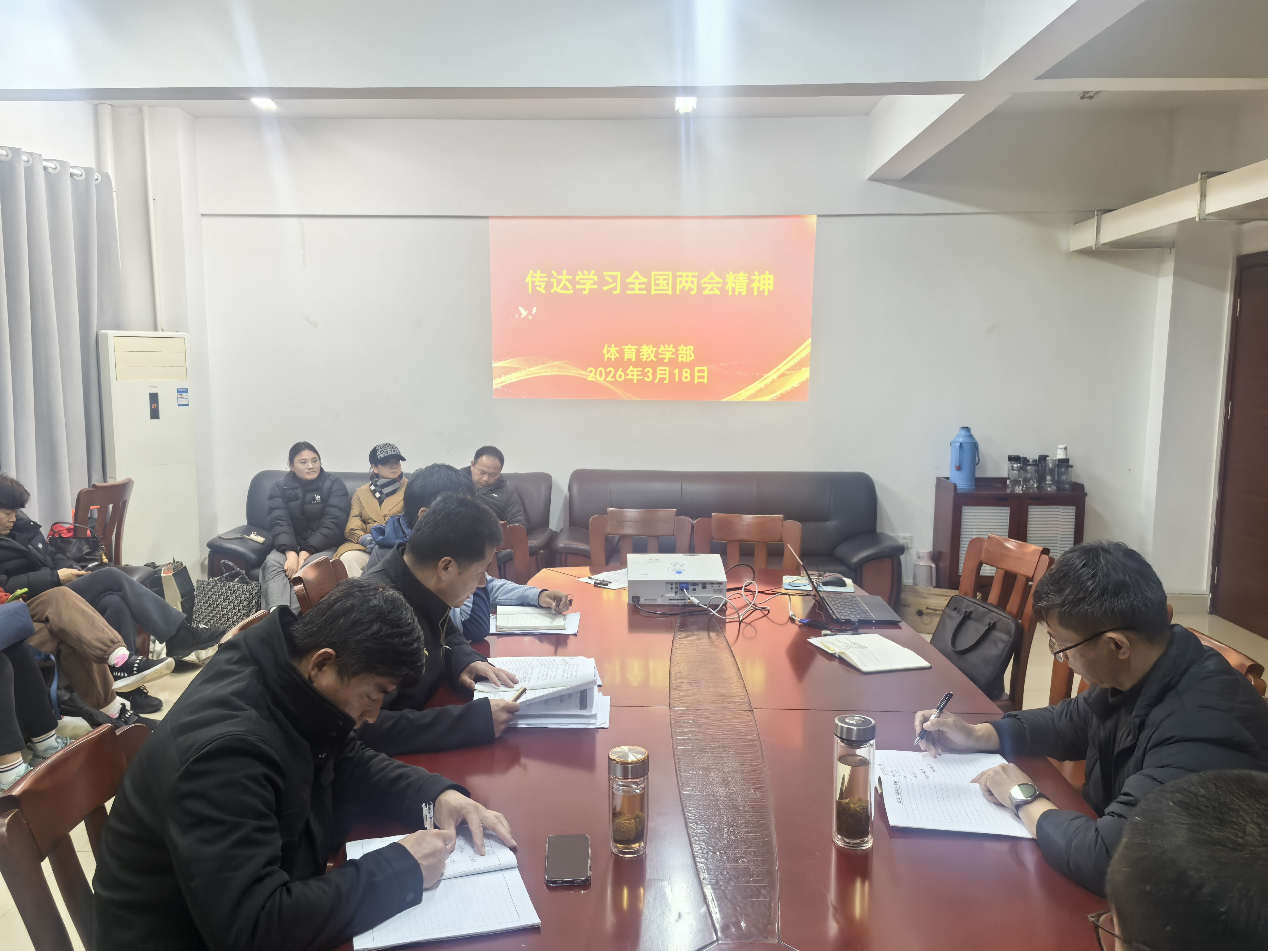 会议伊始,体育部负责人带领全体教职工深入学习习近平总书记在全国两会期间的重要讲话精神。重点学习了总书记关于“十五五” 时期经济社会发展的重大部署,围绕推动高质量发展、加快建设现代化产业体系、推进健康中国建设、强化国防和军队现代化等核心议题,解读了讲话中蕴含的战略思维和实践要求,引导教职工领悟其深刻意义,准确把握中国式现代化建设的前进方向和实践路径。