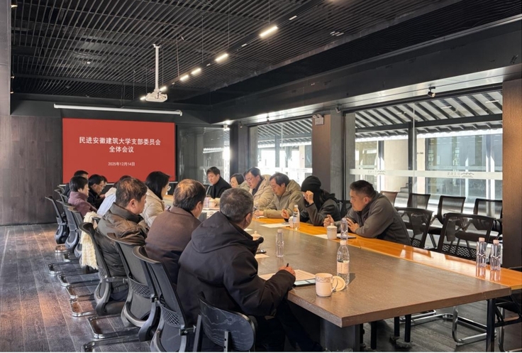 在调研前,支部在圩美磨滩文化旅游区第二会议室召开专题会议。会议由黄成主委传达学习了中共二十届四中全会和中共安徽省委十一届十一次全会精神,学习了中共中央致庆祝民进成立80周年大会的贺词及民进十五届四中全会精神,同时学习了民进省直基层组织换届工作启动会精神,并通报了《民进安徽建筑大学支部2025-2026年换届工作方案》。