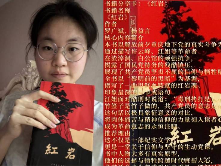 在“分享一本红色书籍”活动中,《红岩》《林海雪原》等经典红色读物成为学子们的首选。2024级英语专业学生夏婧手持《红岩》合影,在分享卡上郑重摘录杨子荣的誓言:“为人民事业死,虽死犹荣!”她在分享心得中写道:“生活在如今这个安定繁荣的时代,也许无法真切地体会那战争年代革命者的共产主义情怀,但我们会记得先烈们百折不挠的斗争,无私的付出和高贵的气节,我们应该缅怀那曾经抛头颅洒热血的英雄儿女们,光荣永远属于他们。人民英雄永垂不朽!”。