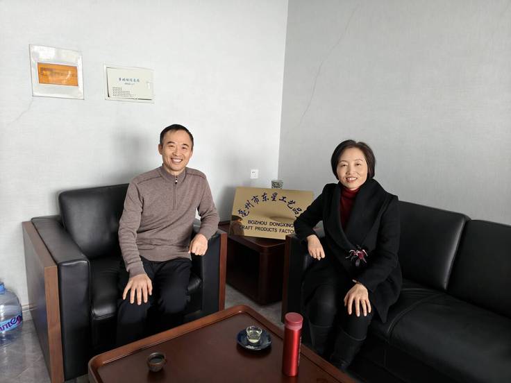 随后,余鸿一行来到亳州市东星工艺品厂,与企业负责人魏东彦进行了座谈交流。魏东彦介绍了公司主营的桐木工艺品、贴面板等产品的生产与出口情况,并表达了对具备良好外语沟通能力和国际贸易知识人才的迫切需求。余鸿表示,学院将根据企业需求,优化人才培养方案,加强对学生实践能力和职业素养的培养,为企业输送更多高素质应用型外语人才。双方还就共建就业实习基地、开展产学研合作等事宜进行了深入磋商。