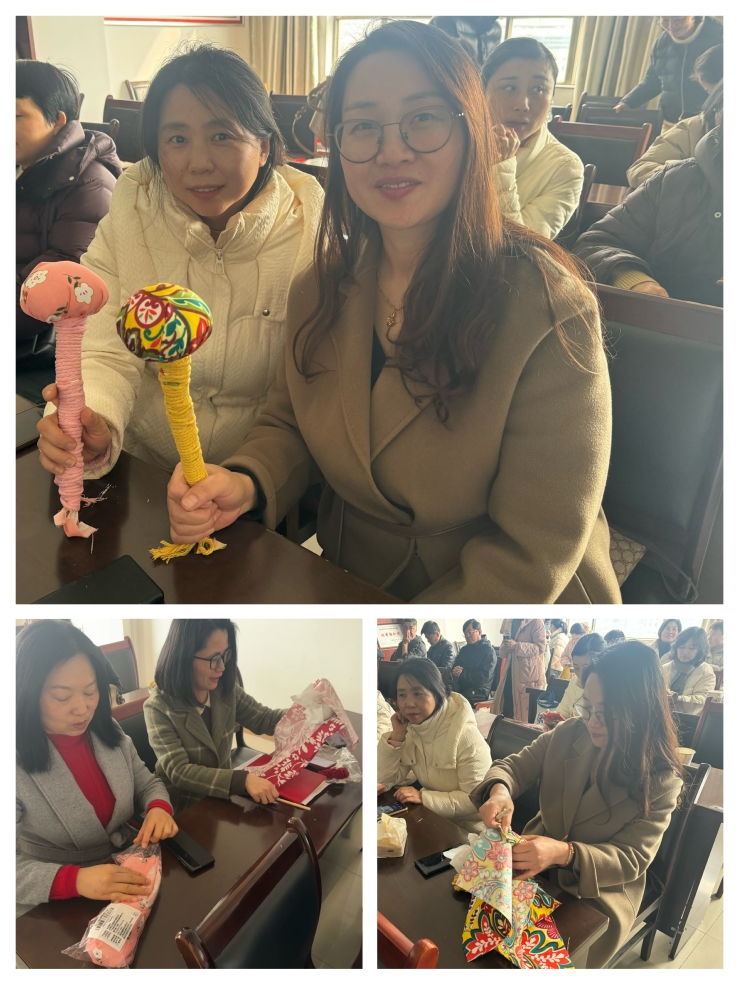 活动现场暖意融融,氛围格外温馨。老师们围坐在一起,对照制作说明,有条不紊地投入到创作中。从艾草的填充、彩绳的缠绕,到装饰的点缀、手柄的固定,每一个步骤都饱含巧思。大家一边专注创作,一边交流心得,现场欢声笑语不断。原本普通的艾草和彩绳,在老师们的手中变成了一个个精致美观、兼具养生功效的艾草锤。手持亲手制作的成品,老师们的脸上洋溢着满满的成就感,纷纷拍照留念,定格这份专属的节日美好。
