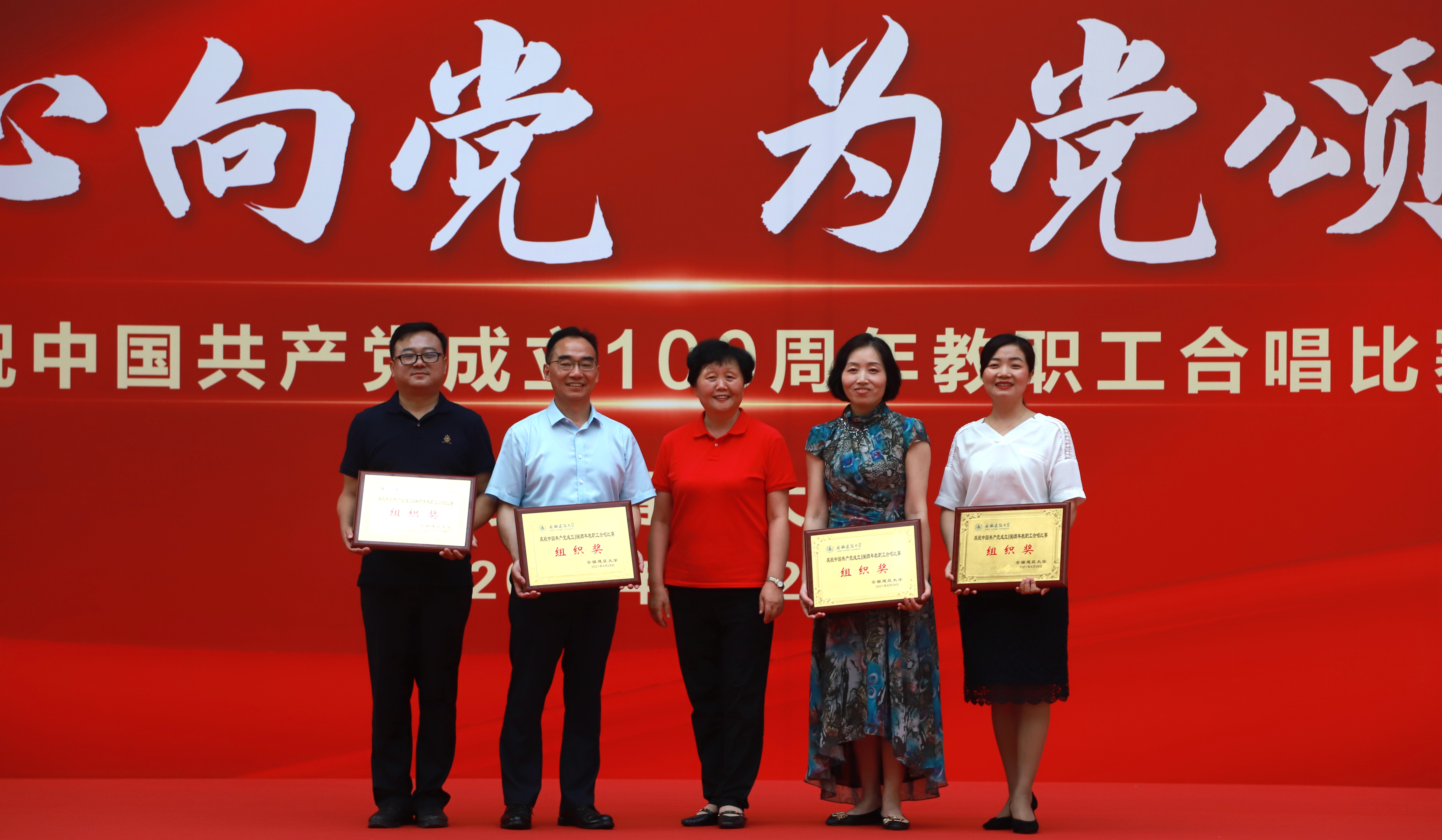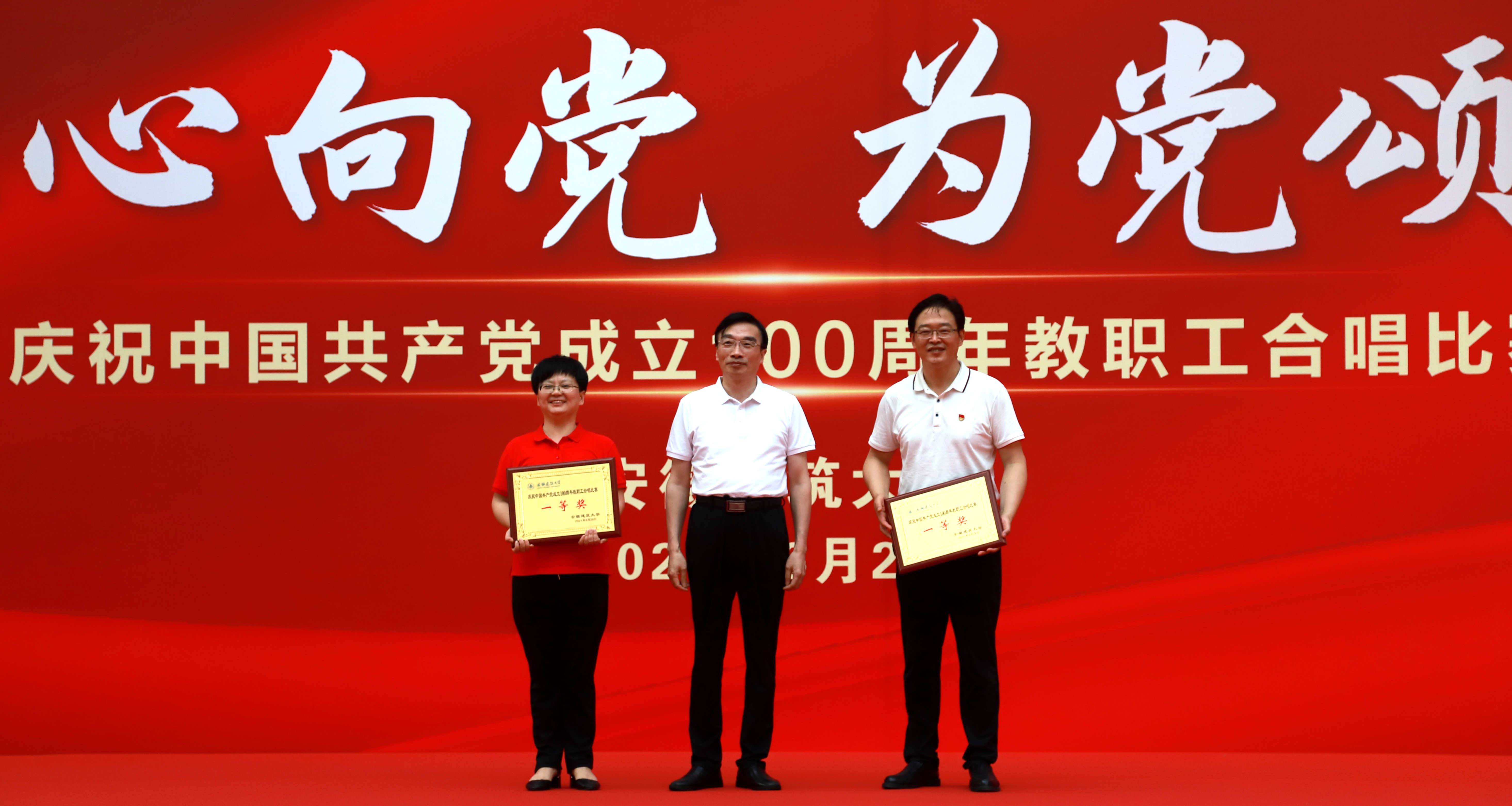 本网讯 奋斗百年路,启航新征程。6月28日,在中国共产党成立100周年来临之际,“红心向党·为党颂歌”——庆祝中国共产党成立100周年教职工合唱比赛在南校区体育馆举办。机关第二分会等16支合唱队参加此次比赛,共同回顾中国共产党成立100年来波澜壮阔的光辉历程,共同祝福伟大的党带领中国人民迈进新征程、奋进新时代。校党委书记、校长孙道胜,校党委副书记吕萍,副校长成祖德,副校长丁克伟,纪委书记、监察专员王玉兰出席并参加比赛。