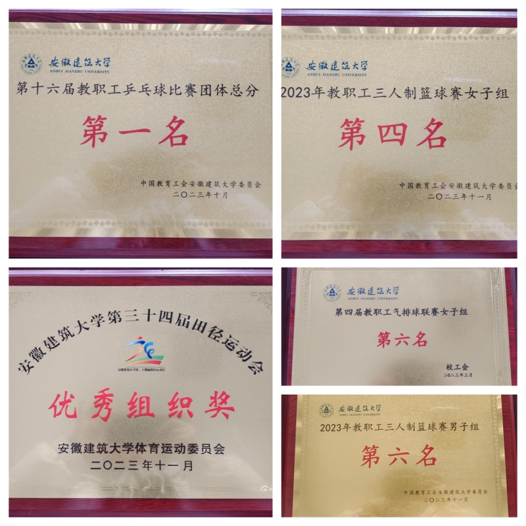 发挥工会桥梁作用,增强学院凝聚力。学院分工会组织开展“通俗桥牌”“迎三八 低碳生活健步行”、赴舒城县五里桥村开展篮球友谊赛等系列群众性文体活动,引导教职工听党话、跟党走。2023年,学院荣获校第十六届教职工乒乓球比赛团体总分第一名、校教职工三人制篮球赛女子组第四名,学校教职工五三人制篮球赛男子组第六名,学校第三十四届田径运动会优秀组织奖等。