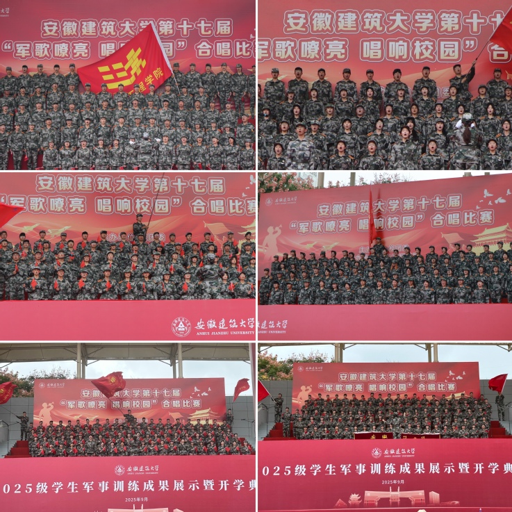 从军训方阵的铁血铿锵到激昂军歌的声震云霄,建大学子以青春为笔、热血为墨,在青春的沃土上绘就了一幅“国防有我、强国有我”的壮丽长卷。响亮的歌声既是国防教育的生动答卷,更是红色基因的代际传承。未来,安徽建筑大学将继续以军歌铸魂、以军训砺志,让家国情怀在青年心中深根固柢,让英雄精神在学子肩头淬火成钢,为中国式现代化建设的宏伟蓝图源源不断输送兼具建筑匠心与国防担当的时代新人!(文/图:尹迪迪、孙文哲、左佳乐;一审:叶训;二审:马智鑫;三审:王媛、丁超)