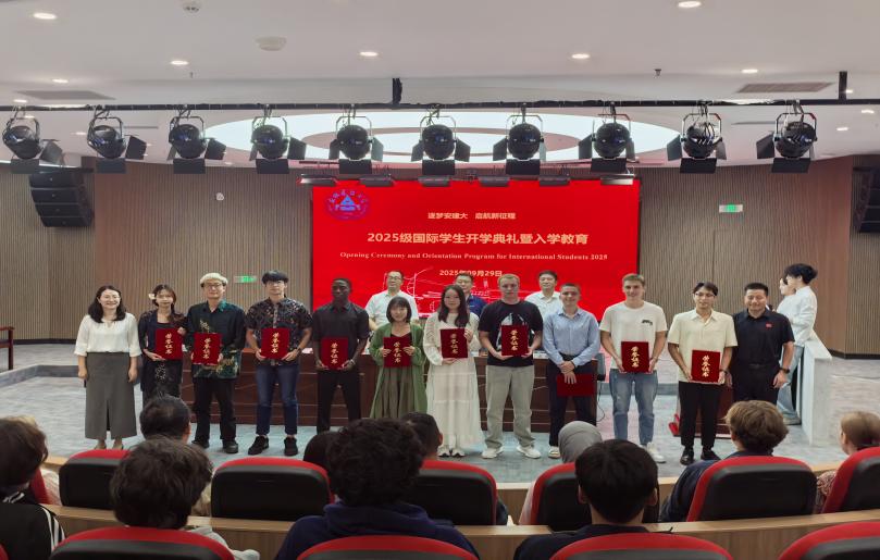 本网讯 金秋送爽,丹桂飘香。9月29日,安徽建筑大学“逐梦安建大,启航新征程”2025级国际学生开学典礼暨入学教育在徽智楼报告厅圆满举行。校党委常委、副校长杨科教授出席典礼并致辞,学校相关职能部门负责人、国际教育学院教师代表、2025级全体国际新生及在校生代表齐聚一堂,共同见证这一重要时刻。