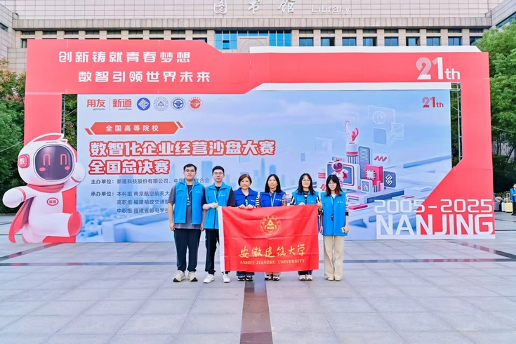 本网讯 近日,由中国商业联合会和新道科技股份有限公司主办、南京航空航天大学金城学院承办的全国高等院校数智化企业经营沙盘大赛(本科组)全国总决赛在南京圆满落幕。安徽建筑大学由汪萌、汪云鑫、马雅洁、李子非四位同学组成的代表队,与来自哈尔滨工业大学、延边大学、南京审计大学等学校的117支晋级团队同台竞技,获全国三等奖。