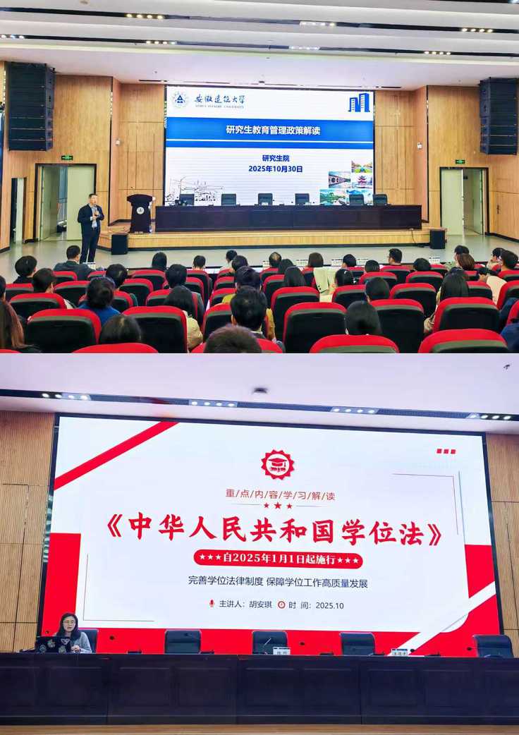 本网讯 为深入贯彻落实习近平总书记关于研究生教育工作的重要指示精神,全面落实立德树人根本任务,进一步加强研究生导师队伍建设,提升导师育人能力和指导水平,学校于10月30日下午在紫云路校区徽风楼二楼报告厅举行2025年研究生导师培训暨经验交流会。校党委常委、副校长杨科主持会议,各培养单位分管研究生工作负责人、研究生秘书、优秀导师及优秀导师团队代表、2024年和2025年新晋研究生导师共同参会。