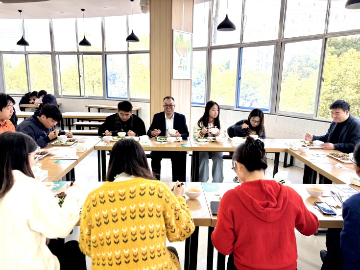 一餐一饭皆载体,一言一行总关情。中午时分,杨科与同学们在食堂共进午餐。就餐过程中,他亲切询问大家的饮食习惯与消费水平,认真听取关于食堂饭菜口味、种类、价格及卫生状况的意见建议。现场气氛温馨,同学们畅所欲言,积极对学校管理建言献策。学院领导、老师们细致记录学生诉求,并表示学校将高度重视、进一步研究改进。通过加强餐厅监管持续提升服务质量,为同学们提供更加丰富、健康、美味的餐饮选择。杨科同时勉励同学们要珍惜粮食,养成良好饮食习惯。