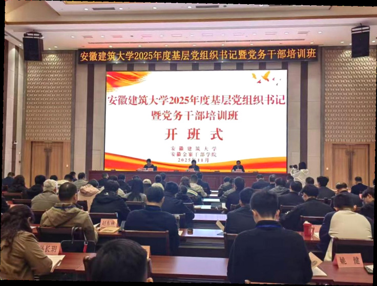本网讯 11月13至15日,学校在安徽金寨干部学院成功举办2025年度基层党组织书记暨党务干部培训班,135名基层党委(党总支、直属党支部)、基层党支部书记,专兼职组织员,党委秘书参加学习培训。校党委副书记李早作开班式动员讲话,金寨县委常委、组织部部长缪亚涛致欢迎辞,金寨干部学院副院长吴继彩主持开班式。