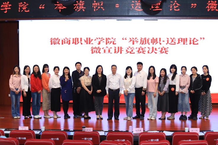 2025年4月16日,马克思主义学院院长马晓艳教授作为特邀专家评委出席了徽商职业学院举办的“举旗帜·送理论”微宣讲竞赛活动。马晓艳从理论阐释的深度、宣讲技巧的运用、内容逻辑的构建等方面,对选手们的表现进行了专业、细致的指导,提出了中肯的改进建议,令在场师生受益匪浅。