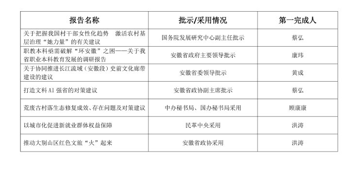 2025年,学校研究成果在服务决策方面成效显著。学校教师撰写的多篇咨政报告获得省部级领导、部门批示和采用。这些成果不仅体现了上级部门对学校研究成果的高度认可,也凸显了学校在哲学社会科学领域的专业能力和决策影响力。学校将以此为契机,继续紧紧围绕国家战略需求,聚焦安徽发展特色,进一步加强战略性、前瞻性、储备性政策研究,不断提升研究成果的质量和影响力,努力推出更多高质量的研究成果,为服务国家科学决策、推动经济社会高质量发展贡献更多智慧和力量。