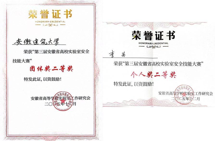 本网讯  近日,安徽省高等学校实验室建设与管理研讨会暨第三届安徽省高校实验室安全技能大赛在黄山学院圆满落幕。我校教师代表队凭借扎实的专业功底、娴熟的实操技能和默契的团队协作,在全省众多高校参赛队伍中脱颖而出,成功斩获团体二等奖,参赛队员李茜老师荣获个人二等奖,充分展现了我校在实验室建设与管理领域的扎实基础和良好的专业素养。