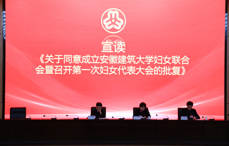 大会在庄严的《国歌》声中拉开帷幕。会上,李早宣读《关于同意成立安徽建筑大学妇女联合会暨召开第一次妇女代表大会的批复》。会议审议通过《安徽建筑大学妇女联合会第一届执行委员会委员选举办法(草案)》,通过总监票人、监票人建议名单,选举产生学校妇女联合会第一届执行委员会委员。在妇女联合会第一届执行委员会第一次会议中,陈剑锐当选学校妇联主席,何鹤立、韩小霞当选副主席。陈剑锐作表态发言。