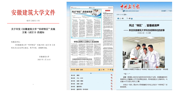 打造全省首个“科研特区”样板间,推动高价值成果产业化落地。学校赋权成果作价入股成立的首个科技型企业——安徽善建新材料有限责任公司,获《中国教育报》专访,相关成果获王清宪省长、任清华副省长高度认可;艺术学院张乐以37件著作权、8件实用新型作价300万元入股,成立安徽首个社科类知识产权赋权企业;钟新团队51项著作权作价600万元成立安徽易海弘毅控股有限公司,形成可复制、可推广的转化路径。