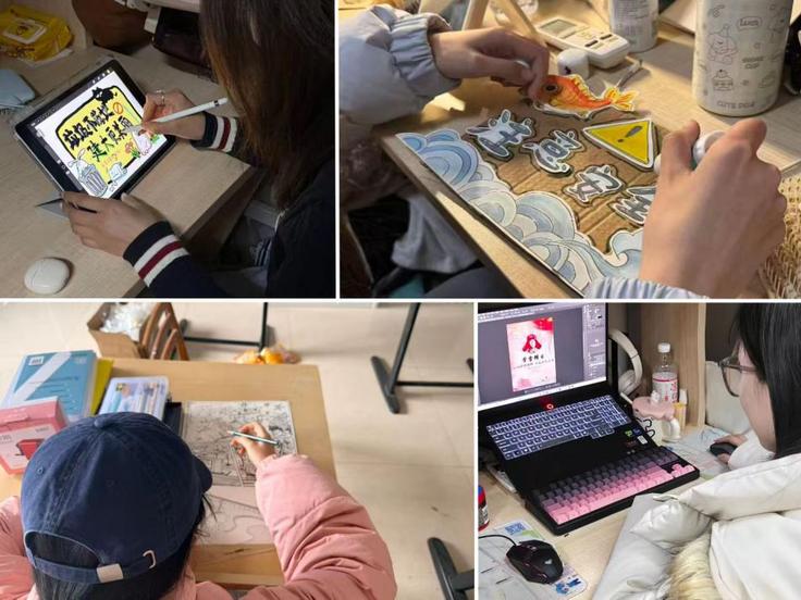 创意赋能,以艺传情。同学们发挥设计专业优势,将雷锋精神融入创作实践:用镜头定格身边好人好事,以影像传递温暖;精心打造雷锋主题IP与表情包,年轻化的表达让奉献精神更加鲜活生动;绘制专题海报、为寻物启事等公益信息设计宣传版面,以专业之力服务同学;还为校园微角落创作解说牌,普及植物知识与环保理念。一件件有温度、有创意的作品,既是专业能力的生动展现,更是新时代青年对雷锋精神的青春诠释。