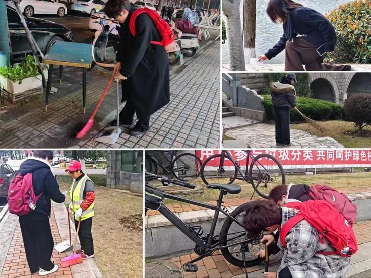微光汇聚,情暖校园。同学们主动走出课堂,化身“小雷锋”,认真清扫人行道垃圾、整理乱停乱放的自行车,让道路环境更加有序;深入校园角落,为坚守岗位的保洁阿姨送上热水和问候,用真诚致敬平凡坚守,共同绘就了一幅“劳动最光荣、奉献最美丽”的暖心画卷。