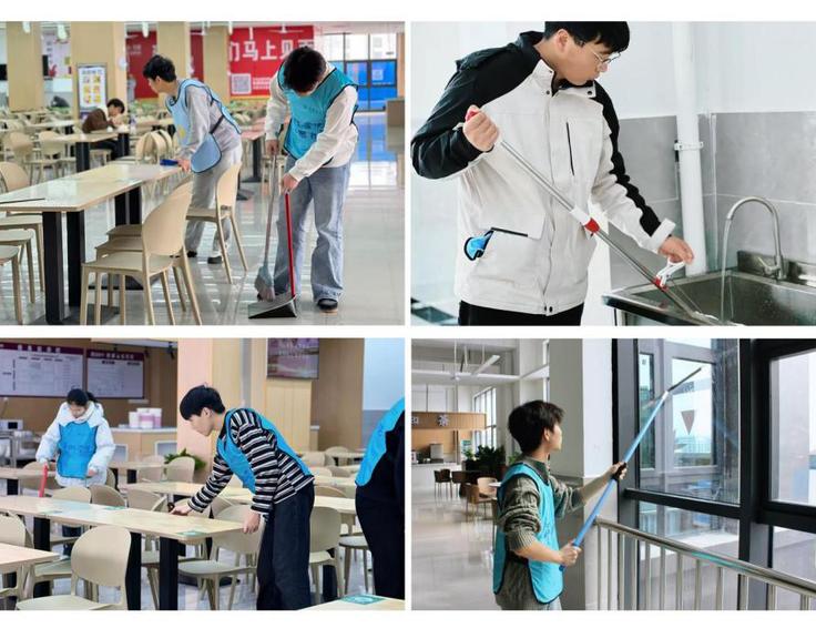 躬身实践,以劳筑美。学院团委联合后勤基建处,携手走进新南园餐厅,共同开展环境卫生清洁行动。志愿者们与工作人员并肩合作,有的仔细清洁餐桌,有的耐心整理厨具,共同维护师生的用餐空间,用实际行动传递劳动之美与校园温情。参与活动的同学表示,劳动虽然辛苦,但看到整洁明亮的食堂环境,心里特别满足。作为新时代青年,我们更应在日常小事中践行奉献精神,用勤劳的双手美化校园、服务同学。
