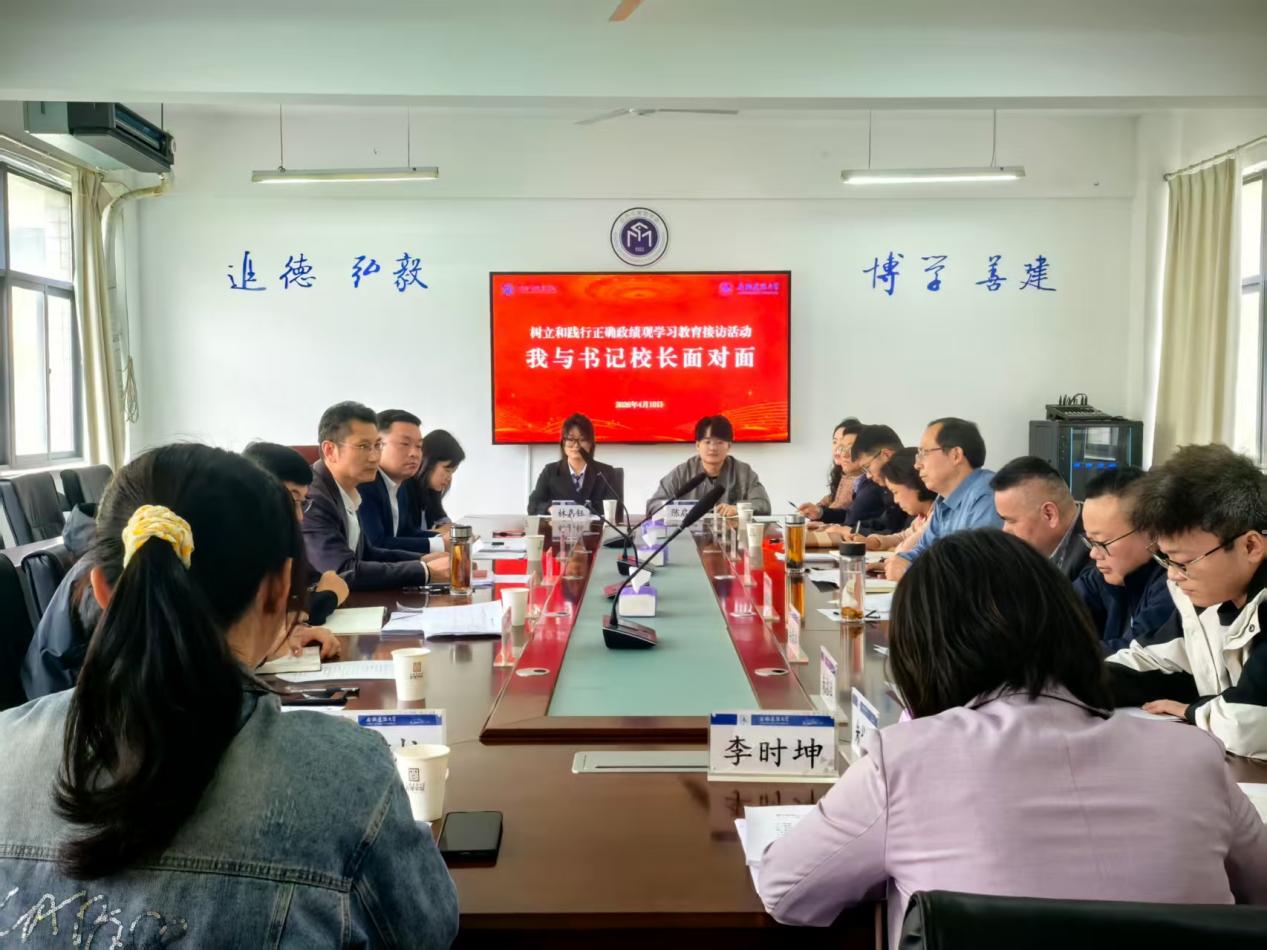 本网讯 为推动树立和践行正确政绩观学习教育走深走实,搭建师生交流平台,广泛听取意见建议,4月10日下午,校党委书记马文革带队赴经济与管理学院开展树立和践行正确政绩观学习教育接访活动,校办公室(党办、校办)主任马宾、教师工作部(人事处、人才办)部(处)长朱涛、学生工作部(处)常务副部(处)长帅英陪同。在金寨路校区建树楼404会议室召开“我与书记校长面对面”座谈会,经管学院相关教学科研一线教师、民主党派人士、本科生以及研究生代表参加会议。