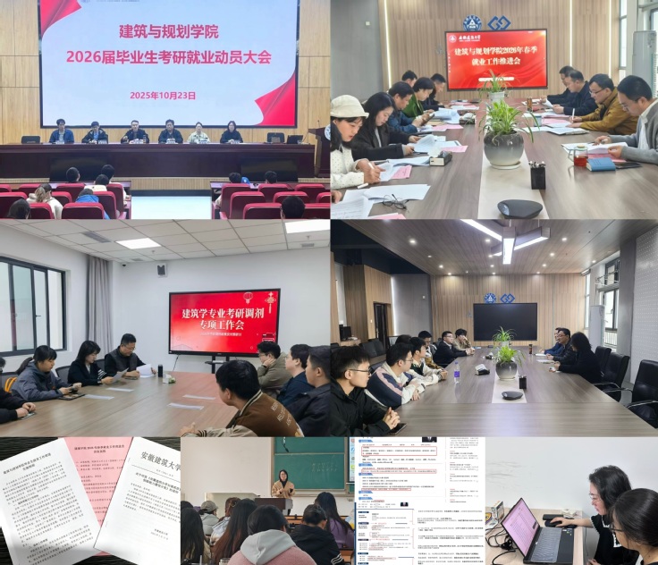 学院坚持党建引领就业与升学工作,以高度责任感统筹推进人才培养,构建全员、全程、全方位的育人保障体系。学院出台《建筑与规划学院毕业生就业工作推进实施细则》,以制度文件明确工作方向、压实工作责任,建立学院领导—专业系部—辅导员—专业导师—毕业设计指导老师五级点对点包保机制,实现责任全覆盖、帮扶无死角。同时,充分凝聚朋辈帮扶力量、联动优秀校友资源,形成校内校外协同助力、学长校友携手护航的育人格局。学院于2025年秋季召开毕业生考研就业动员大会,2026年春季召开专题就业工作推进会,以常态化部署推动工作落地见效,为学子升学深造提供坚实组织与制度保障。