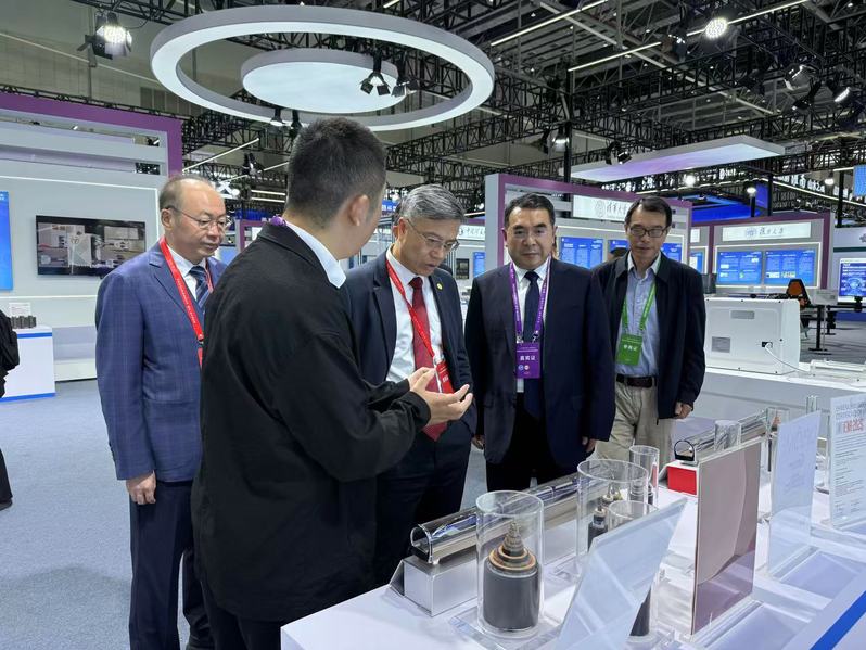 开幕式和省部领导、嘉宾巡展结束后,蔡国军带领学校人员集体观展,详细了解各类前沿科技创新成果的技术特点、转化应用情况。蔡国军与东南大学、安徽大学等省内外高校参展科研团队及工作人员亲切交流。