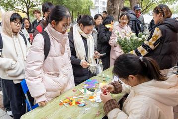 随着纸飞机划过一道道优美的弧线,不仅负面情绪仿佛也随之被“清空”,同学们的喜悦也被分享出去。作为告别过去、拥抱未来的仪式,每一位完成投掷的同学都领取到了一支鲜花。这不仅是一份礼物,更是一份来自生活的美好祝愿,寓意着在释放压力,分享喜悦后,心灵将迎来如花般绽放的时刻。