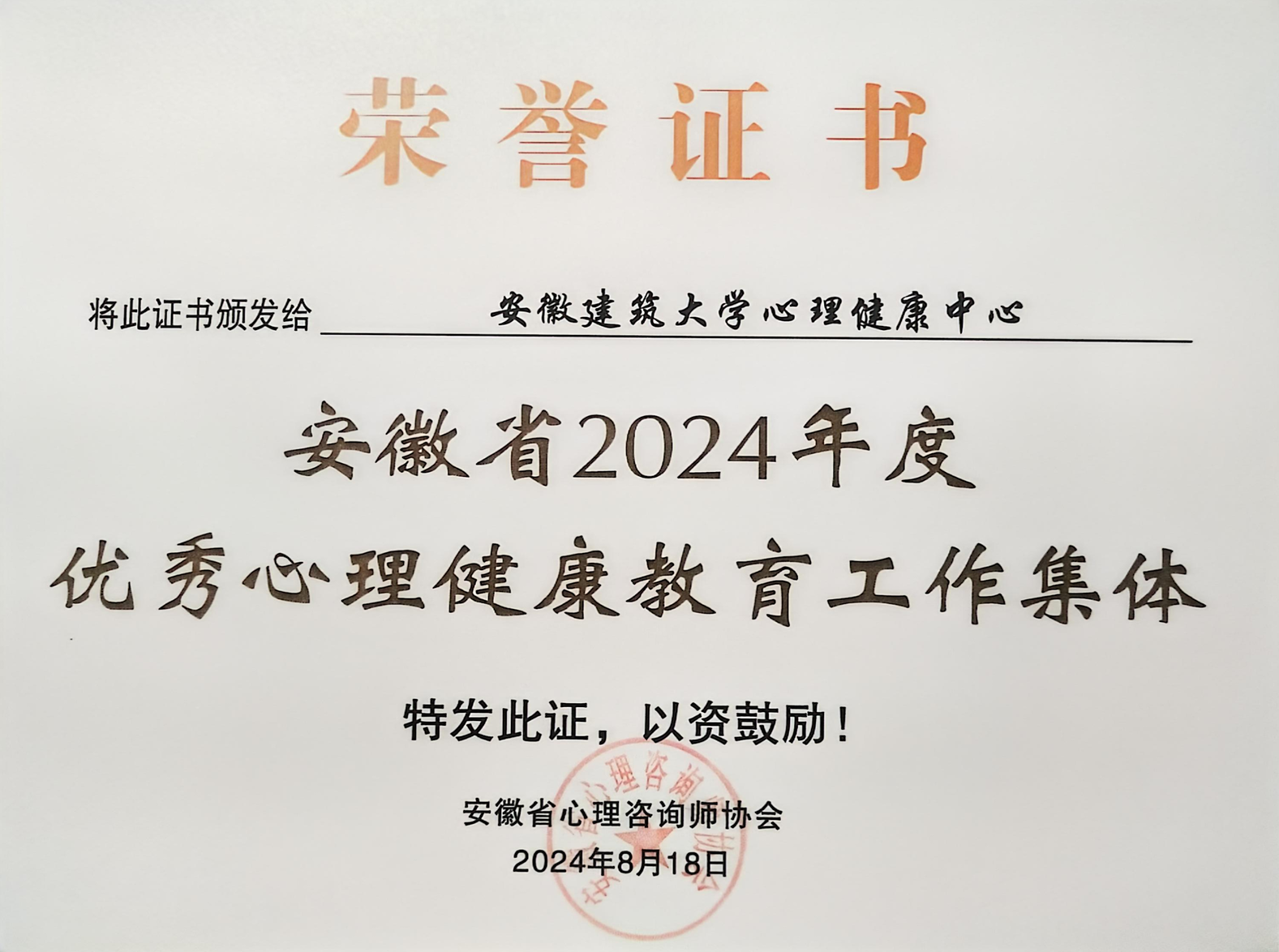 安徽省2024年度优秀心理健康教育工作集体