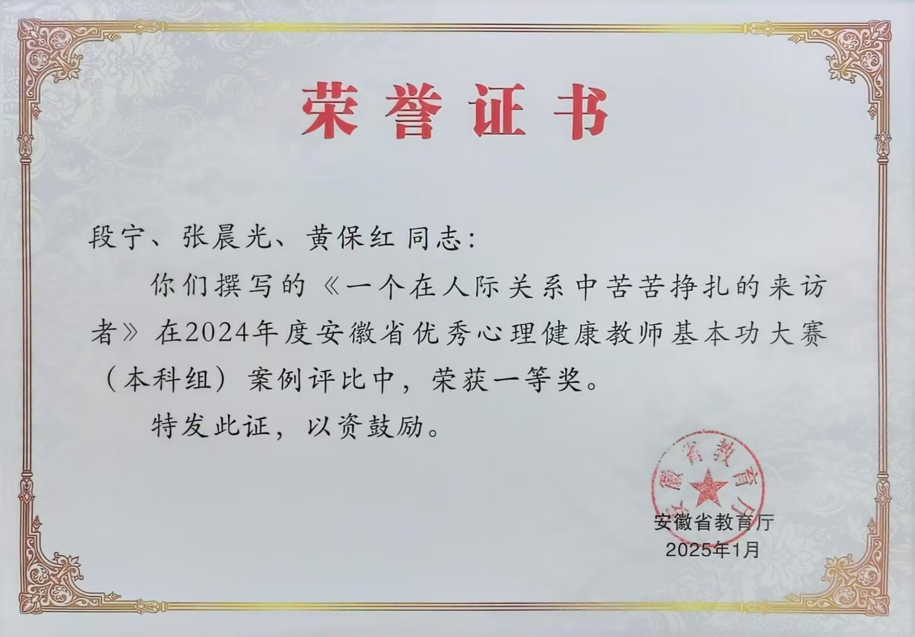 段宁老师荣获安徽省心理健康教师基本功大赛一等奖