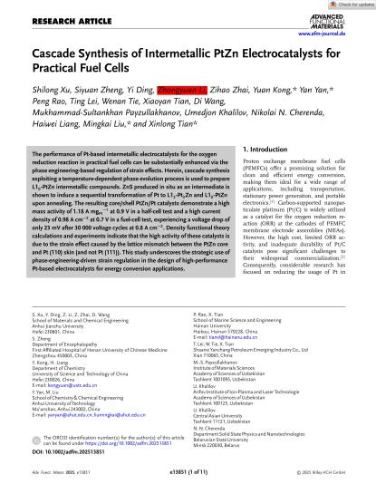 科研探索的序章,奏响于大二那年踏入实验室的笃定步履。他锚定燃料电池催化剂氧还原性能测试这一前沿方向,开启了与瓶瓶罐罐、精密仪器相伴的科研征程。从生疏驾驭测试设备,到匠心优化实验方案;从伏案埋首整理庞杂数据,到字斟句酌参与论文撰写,他在无数次的试错与复盘里,触摸科研的真谛。这段深耕不辍的岁月,不仅让他洞悉了无机非金属材料在能源领域的应用价值,更以第四作者的身份,在国际知名期刊《Advanced Functional Materials》(AFM)上留下了属于自己的学术印记。