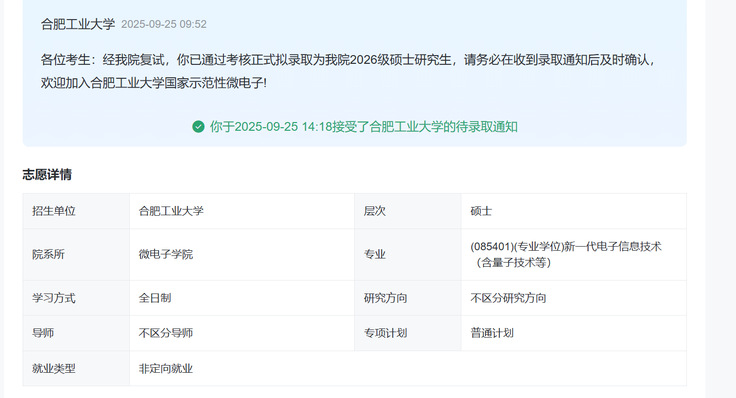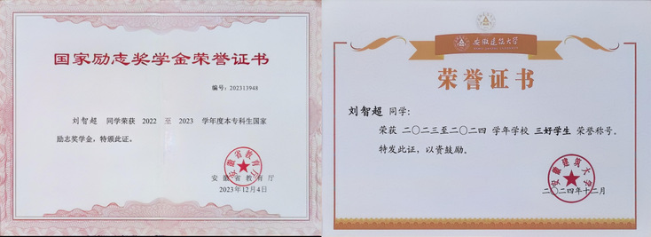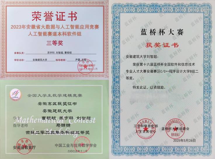 对刘智超而言,大学是知识积累、能力锻炼与自我突破的阶段。他以专注为笔,以踏实为墨,在学业上精益求精,在竞赛中锤炼自我,在项目中验证真知。他用行动证明:真正的成长来自课堂内外的持续投入,来自理论到实践的勇敢跨越。如今,他正朝着合肥工业大学的新平台稳步前行,继续书写属于自己的奋斗篇章。(文/图:吴雅婷、刘智超;一审:丁媛媛、方绍正;二审:帅英;三审:张润梅、徐庆和)