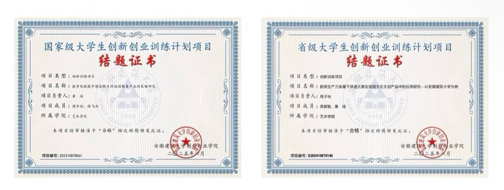 在科研与项目实践中,周子怡展现出强烈的探索精神和团队协作能力。她作为主要成员参与了国家级大创项目《数字化赋能中国合肥乡村旅游的策略研究》;担任省级大创项目《新质生产力发展下非遗元素在校园文化文创产品中的应用研究——以安徽建筑大学为例》的负责人,从选题论证、调研分析到成果转化,她逐步建立起系统的研究思维与实践能力。她深知,真正的创新源于日常的积累与不断地发问。她已在学术期刊上发表多篇论文,将设计实践与理论基础相结合。科研之路需要耐心与韧性,在项目推进与论文修改过程中,她不断学习、调整、优化,最终交出了一份科研“成绩单”。