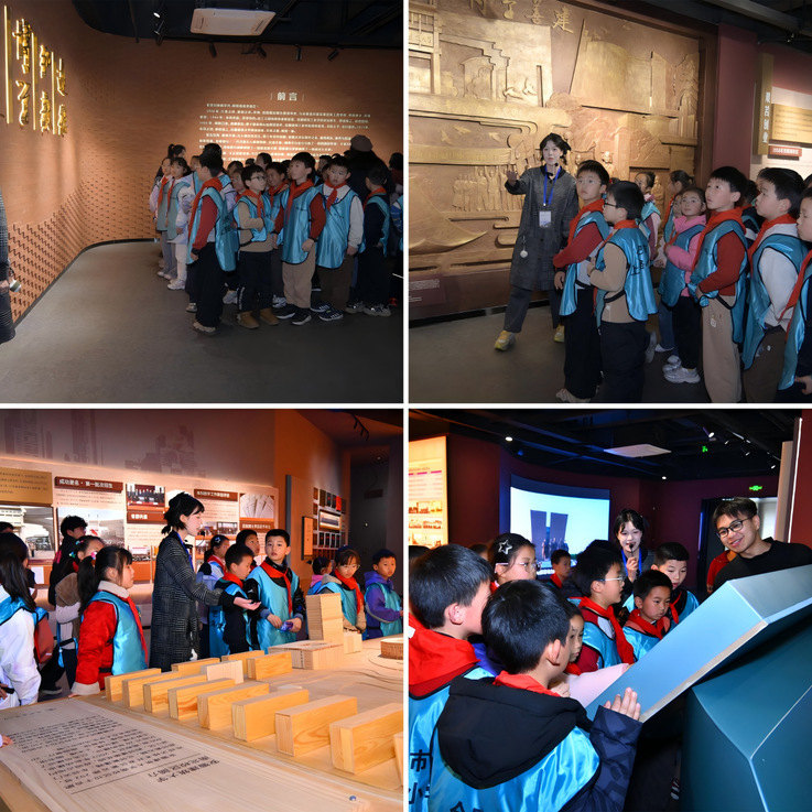 实践的火种,还需历史的薪火来点亮。活动的最后,师生们共同走进了承载着岁月记忆的校史馆。孩子们在厚重的历史与生动的讲述中,触摸学术脉络,感悟奋斗精神,一段沉浸式的大学初体验,悄然点亮了他们对知识的渴望。参观结束后,两校师生在温馨愉悦的氛围中合影留念。安徽建筑大学向上海路小学师生赠送了蕴含校园文化特色的文创产品,为此次充实而有温度的共建活动画上了圆满句号。