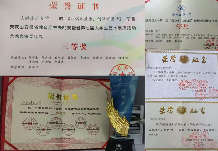 作为院学生会文艺部骨干,她积极推动工科与美育融合。在安徽省第七届大学生艺术展演中,用灵动表演传递工科青年的青春活力;在“平安合肥,反诈有我”情景剧大赛中,她结合校园生活创作剧本,通过真实演绎普及反诈知识,展现安建大学子的社会责任感;在学校“中华经典吟唱大赛”和“迎新春美育展演”等多项活动中,她既当演员又参与剧本创作,将校训精神融入其中,累计收获省、市、校级奖项数十项,并获评校“美育先进个人”。