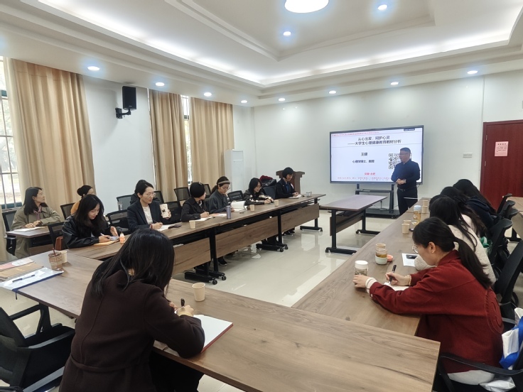 本网讯 为进一步提升大学生心理健康教育课程的教学质量,促进教师专业成长。4月1日,学校在紫云路校区一站式学生社区举办《大学生心理健康教育》课程集体备课会。学生处负责人以及全体心理健康教育课程任课教师参加会议。备课会围绕教材分析、教法创新与教学研讨三个方面展开,旨在通过深入交流与思想碰撞,凝聚育人合力,共筑心灵防线,为新学期心理健康教育课程的高质量开展奠定基础。