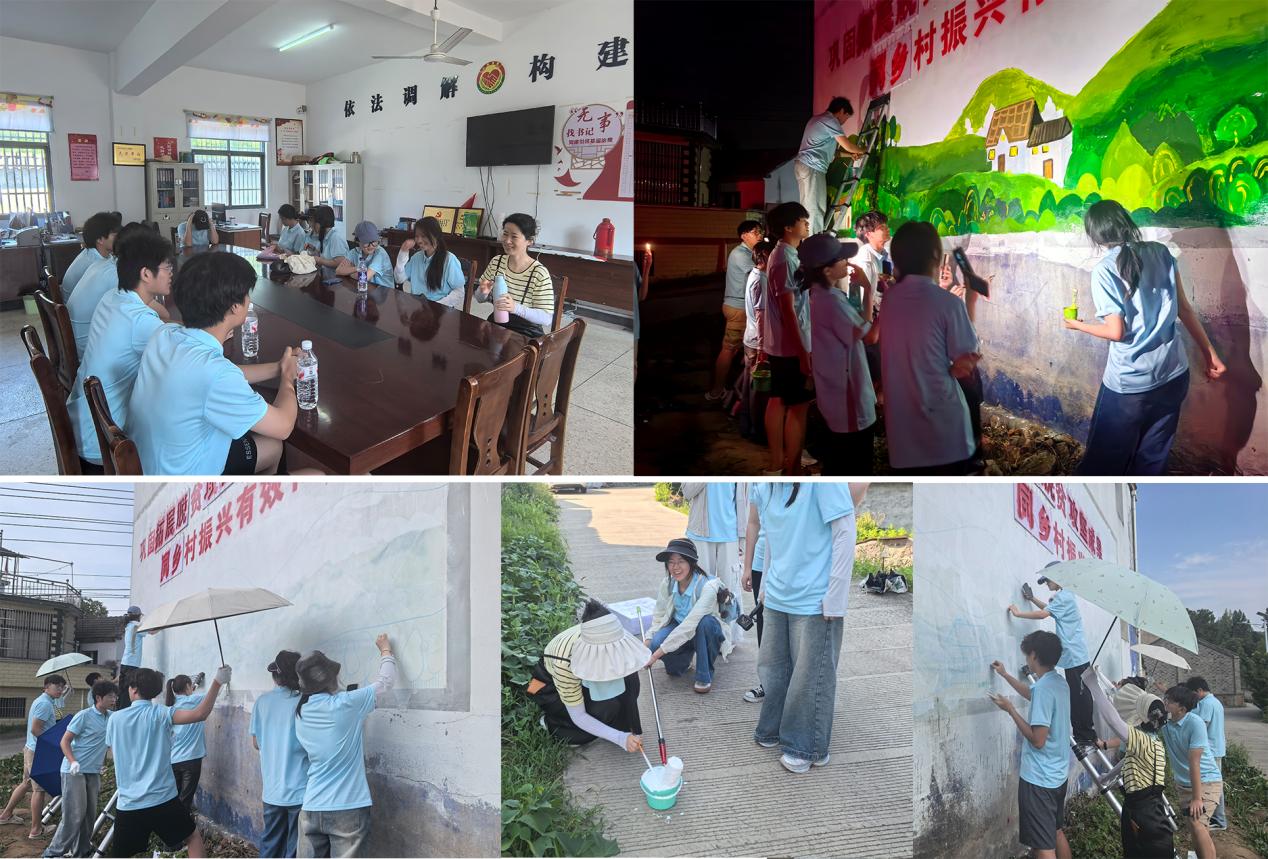 此次艺术学院“三下乡”实践活动,共完成汤池村特色墙绘与五里桥村3面近250平方米的主题墙绘,不仅为乡村“美颜”,更以艺术为桥传播党的政策、凝聚群众力量。