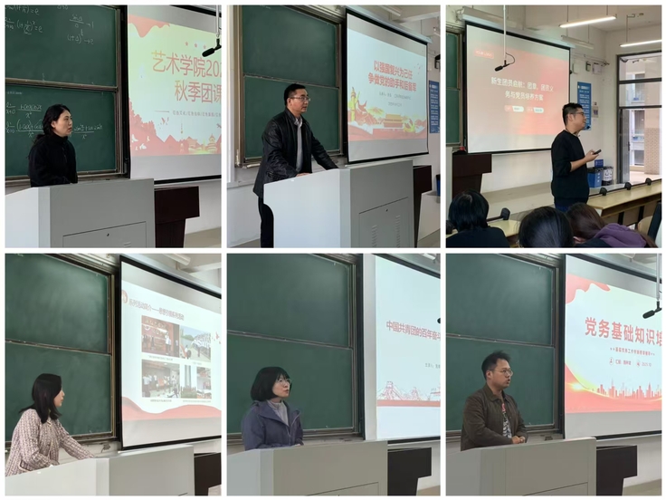 学院党委副书记任磊聚焦“以强国复兴为己任,争做党的助手和后备军”主题,深刻阐释团员青年的责任定位与时代使命,鼓励大家坚定理想信念,挺膺担当,奋力谱写强国复兴的青春篇章。校团委岳琦老师围绕“青春跟党走,建功新时代”,结合艺术专业特色,号召团员将艺术追求与时代发展同频共振。学院团委书记孙长玥以“实践育人筑牢信念根基”为切入点,引导同学们在实践中锤炼品格、坚定信仰;辅导员管皓宇聚焦“新生团员启航”,助力新同学快速融入组织、明确成长方向;辅导员袁婧卓带领同学们回顾“中国共青团的百年奋斗历程和历史启示”,从百年征程中汲取奋进力量;辅导员施林坡以“坚持党旗所指就是团旗所向”为题,强调团员青年应紧跟党的步伐,自觉听从党和人民召唤,努力建功立业。