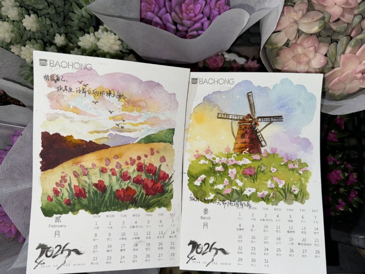 同学们提交的作品形式多样、构思巧妙,“以规划之美,赋有序生活”为理念,将艺术创意与日常规划相结合,设计出既实用又美观的计划表,在潜移默化中培养有序、自律的生活方式。《系絮语-光阴手绘日历》以草木生长、四时光影为灵感线索,运用柔和的水彩风格,将日程规划与视觉美感相结合,既兼具日期记录的实用性,也能为日常增添一份治愈心绪的小美好。其他作品也呈现出多元的思考,有的注重目标管理与任务分解的实用设计,有的融入插画、色彩与装饰元素的美学表达,在提升执行动力的同时,让时间管理成为愉悦的生活体验。