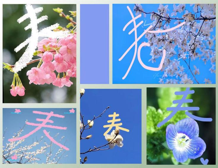 同学们漫步校园,以草木为笔、光影为墨,将樱花、新叶、晨光等自然意象融入“春”字笔画,或叠印于繁花枝头,或点缀在绿茵之间,让汉字在春日里绽放鲜活生命力,尽显青年学子的艺术巧思与创造活力。