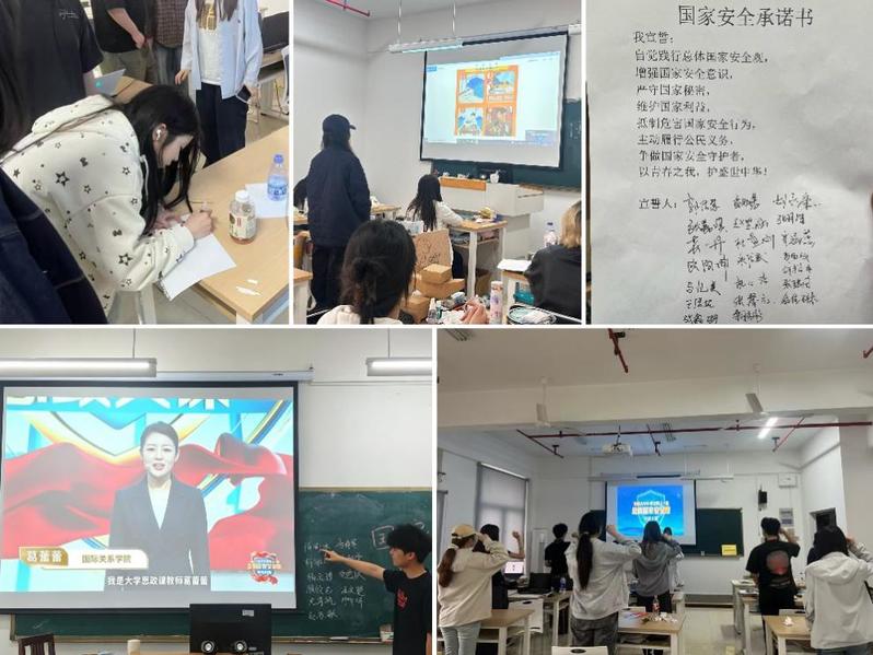 学院各团支部组织团员开展国家安全教育科普学习、观看思政直播回放,结合支部实际开展形式多样的主题特色活动,如安全知识竞答、风险“找碴”互动、国家安全承诺签名等,引导团员青年在互动参与中深化对人民安全、政治安全、经济安全及军事、文化、社会安全等重点领域的理解,将安全意识内化于心、外化于行。