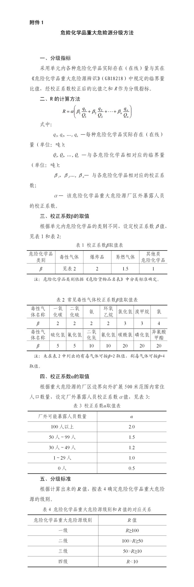 1.危险化学品重大危险源分级方法